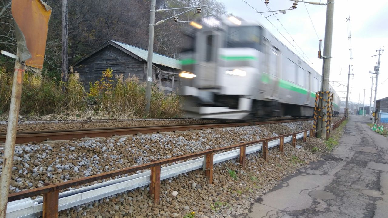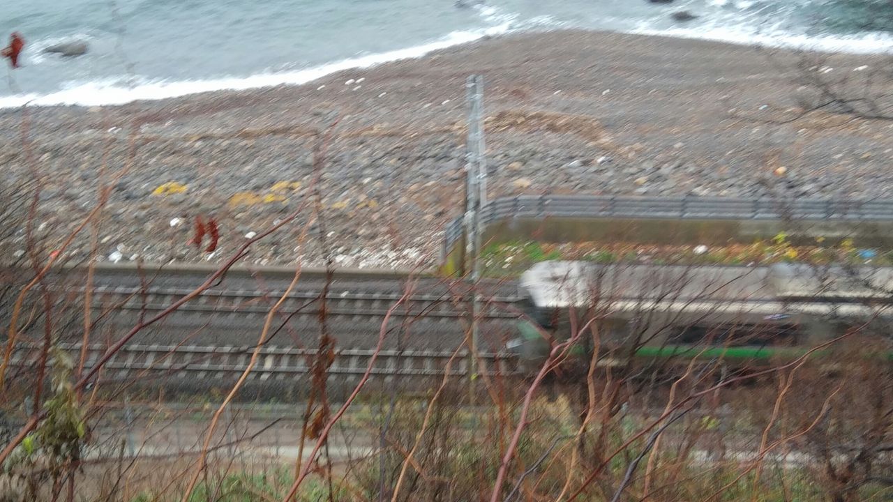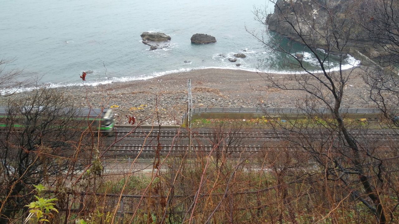 🐻張碓の崖から見た張碓の海🌊と線路です🎵