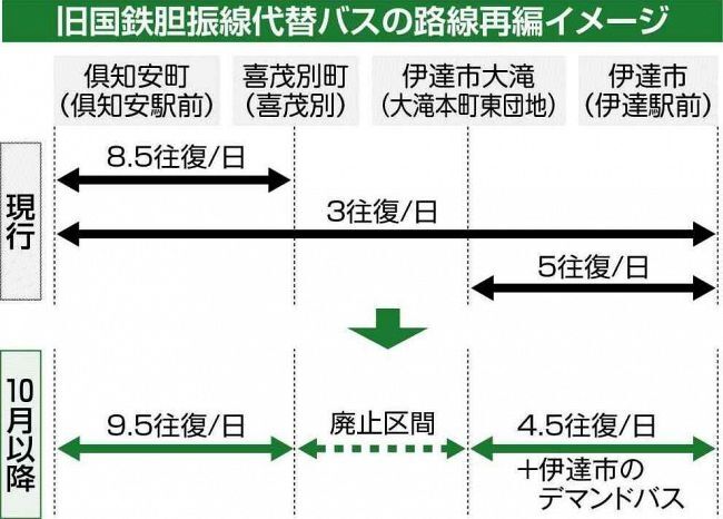 ただ、再編案は便数減を前提としており、通学、通院利用者らの理解を得られるかまた、喜茂別~大滝間の代替輸送方法についても含めて課題になりそうだ。