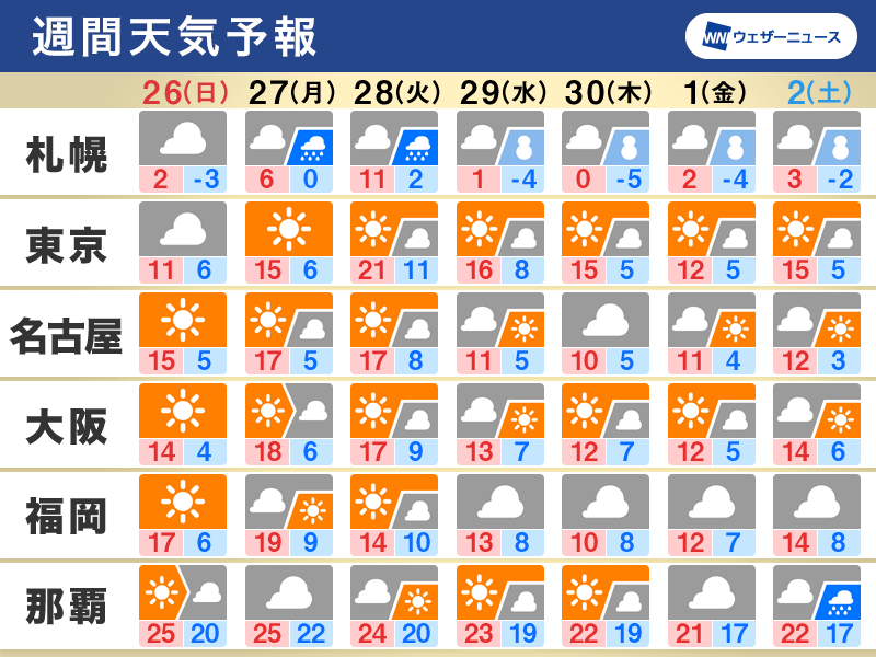 一方で、東北北部や北海道は雪の降りやすい状況が続き、局地的な強い雪や吹雪が続くおそれがあります。