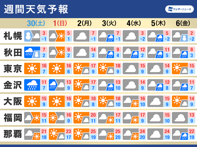 12月1日からの一週間は天気が変動します。