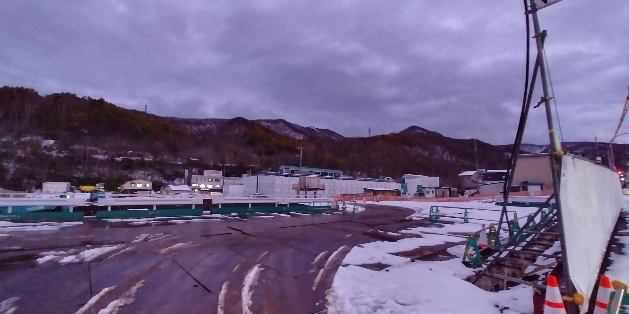 雪の中新幹線の駅工事が進む小樽市内