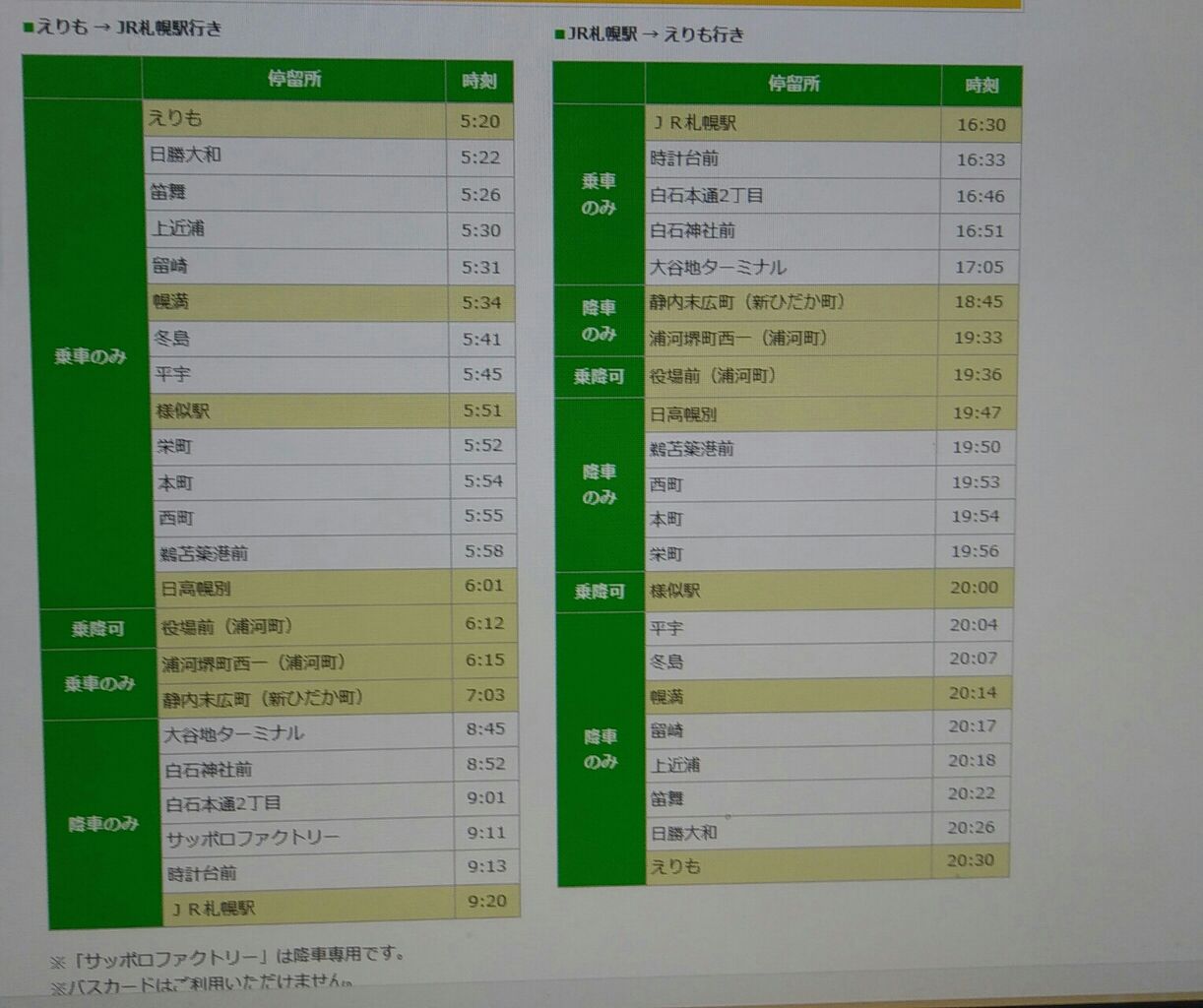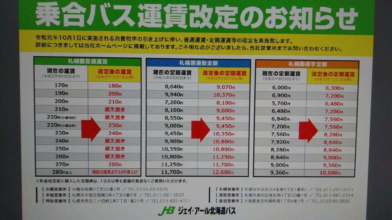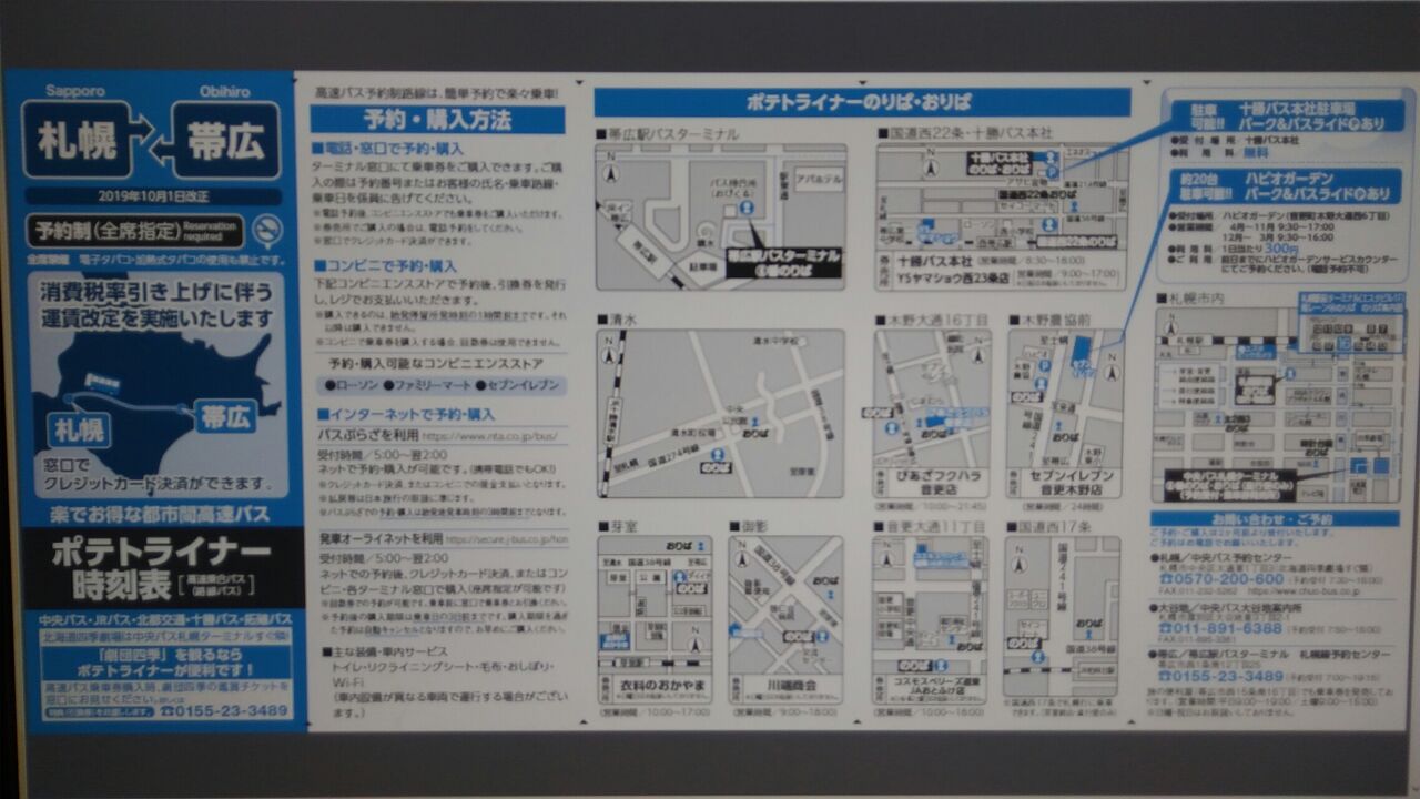 ○札幌市内路線、小樽、江別、北広島、長沼、深川(深名線)、様似、広尾、えりも、浦河の各路線の土曜日曜祝日ダイヤが変更になっています。