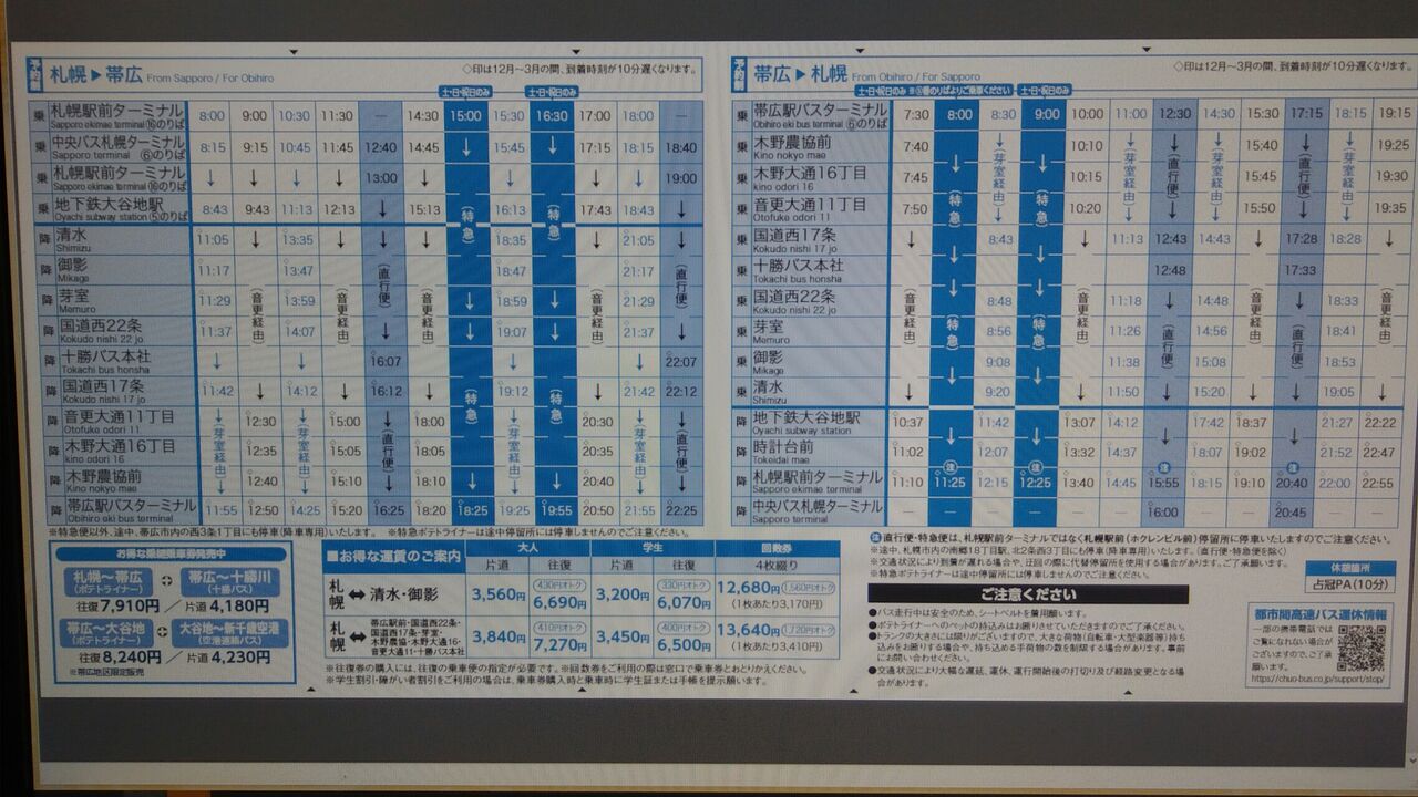 🐻ジェイアール北海道バス12月1日(土日祝日)冬ダイヤ改正❗