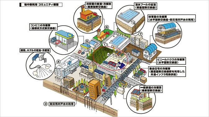 日本では、2012(平成24)年に開業した東京スカイツリー地区で、省エネ技術のヒートポンプシステム導入など、地中熱利用施設の例も増えてはいるが、諸外国と比較すると、知名度も利用実績も少ないのが実情。同社はAIやビックデータを活用し、同市での地中熱による日本初の次世代の熱供給網とされる第5世代地域熱供給網構築と地中熱の認知度の向上を目指す。