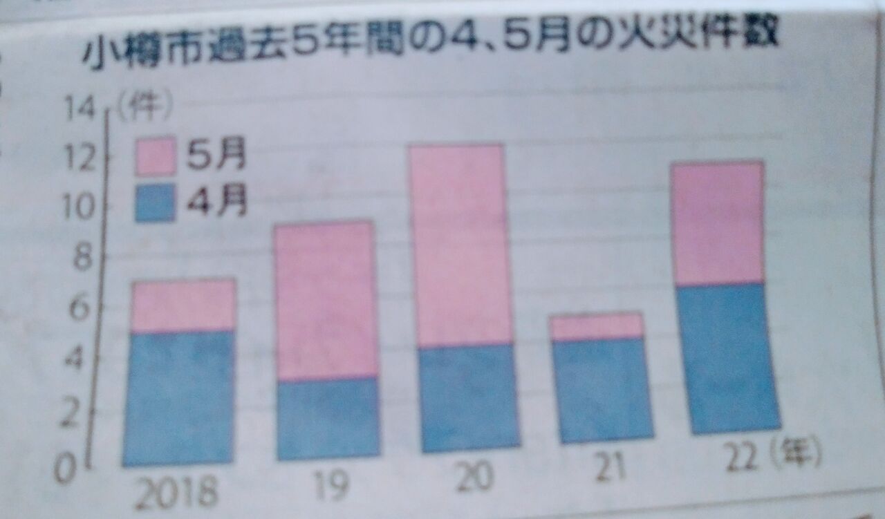 小樽市消防本部がまとめた今年4月・5月の小樽市内の《火災発生件数》は11件で、前年同期(5件)の2倍超だった。