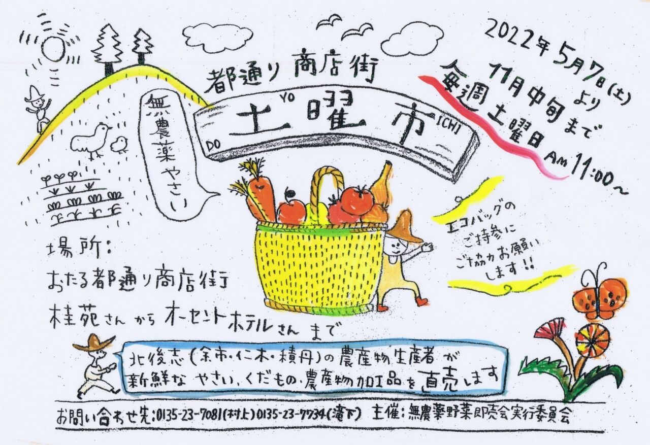 また都通り商店街では11月中旬迄の毎週土曜日朝11時から、無農薬野菜土曜市があります。