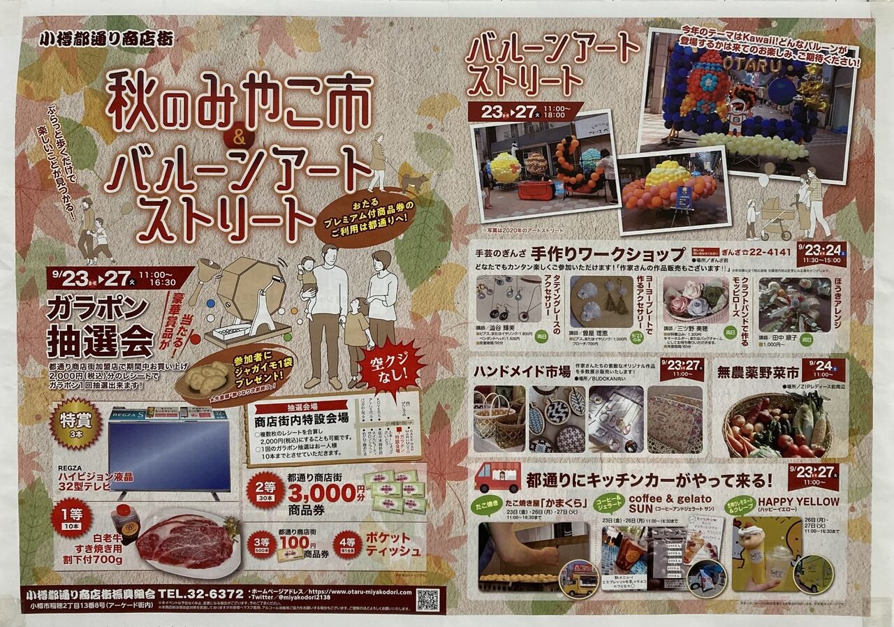 🐻✋商品券などが当たる抽選会が行われる恒例の「秋のみやこ市」が、小樽都通り商店街(稲穂2)で開かれている。