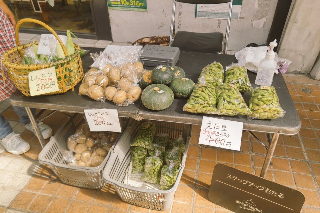 小樽市内の若手事業者でつくる実行委員会が初めて開き、小樽や札幌等11店が参加して、有機野菜や古着等多数並んだ。