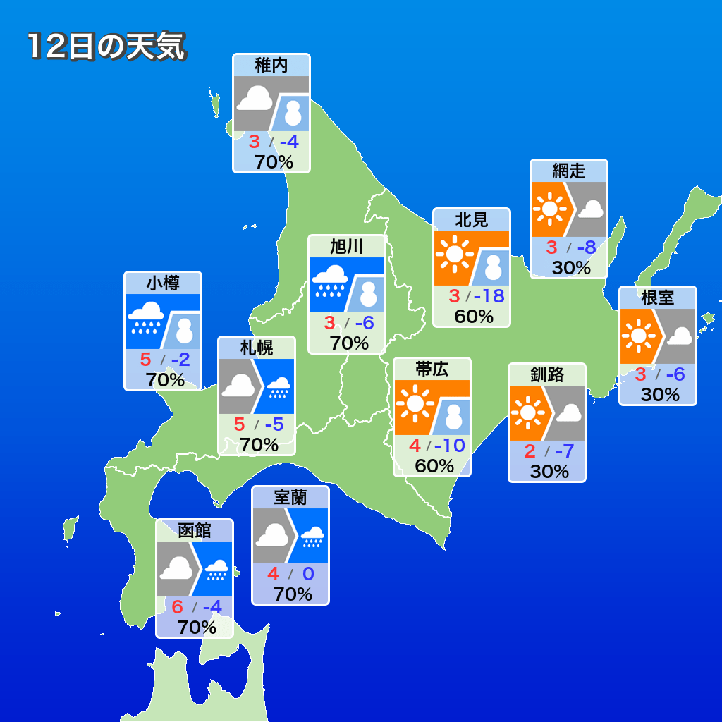 🐻✋札幌雪まつり最終日の11日(火)は…弱いながらも冬型の気圧配置が続くため、北陸や北日本の日本海側は雪が降りやすくなります。