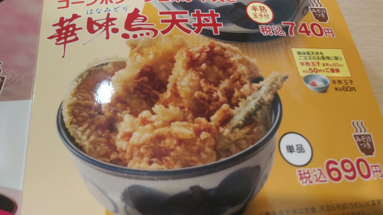 🐻JR札幌駅北口🐻地下街に有るてんや札幌アピア店🐻てんやのメニューです。🐻🍴華味鳥(はなみどり)天丼 690円(税込)🍴🐔鶏肉、おくら等の天ぷらが入っています🎵【てんや札幌アピア店のアクセス】住所:札幌市中央区北5西5アピア地下街時間11:00~21:00 無休《🐻北海道人気ブログランキング❕と北海道にほんブログ村❕に参加しています🎵良ければ👍クリックをお願いします🙇⤵》北海道人気ブログランキング 北海道にほんブログ村(🐶ぶん公🎵にクリック👍をお願いします🙇⤵)《🐻御覧頂きありがとうございます🎵🐻➡🙇⤵》