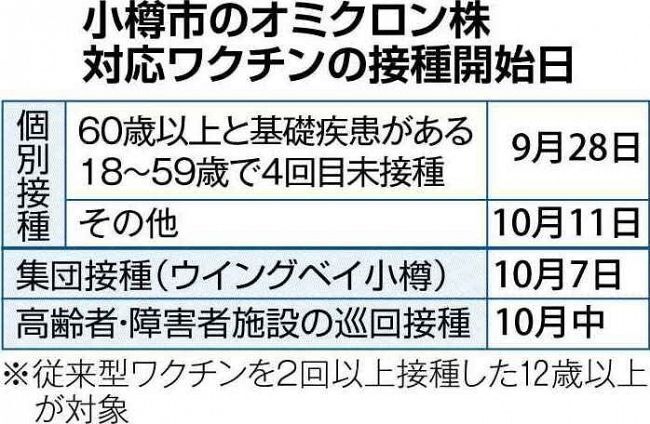 🐻✋小樽市は9月28日、新型コロナウイルスのオミクロン株に対応した新しいワクチン接種を始めた。
