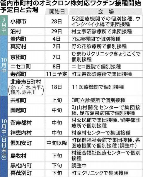「個別接種」で進めるのは岩内町、共和町など計11町村と最も多く、感染「第8波」を見据えた備えが本格化する。