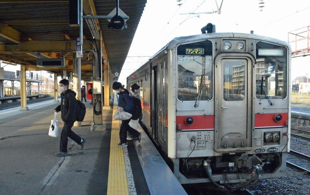 JR留萌線深川駅に到着した列車。深川市内の高校へ通学する生徒の足として欠かせない存在だ
