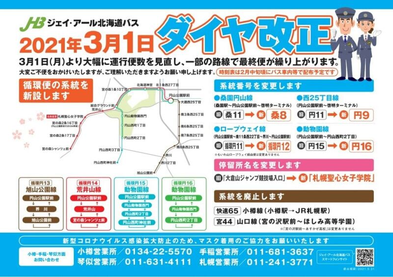 🐻ジェイアール北海道バス3月1日ダイヤ改正の内容❕