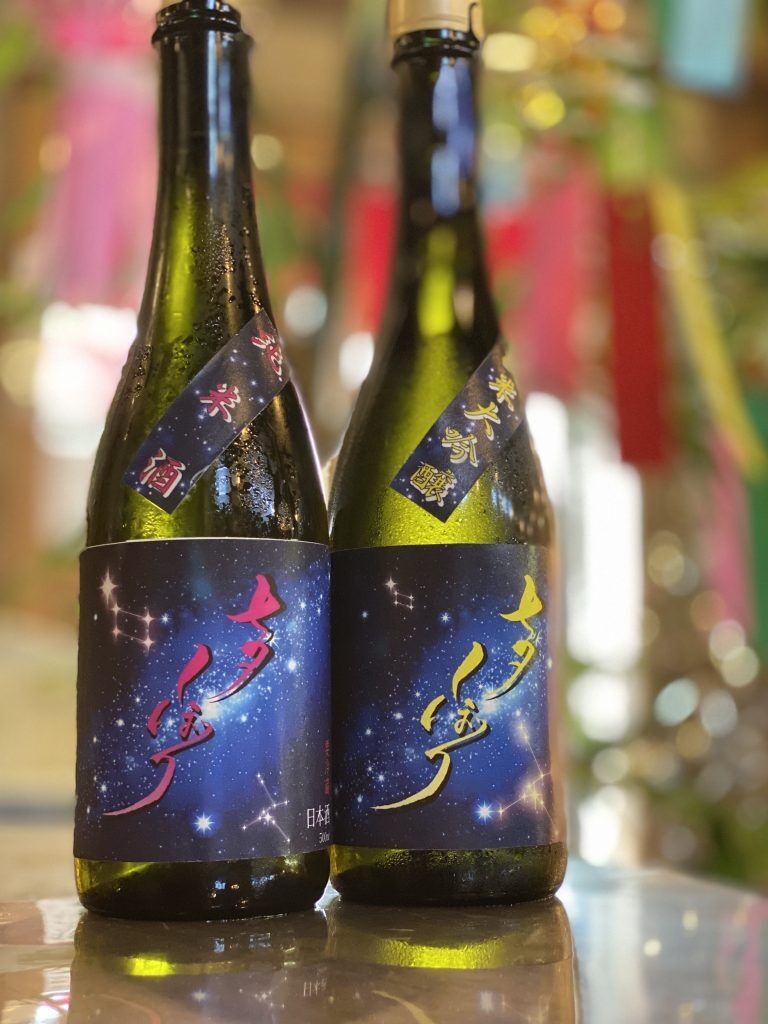 『七夕しぼり』…搾ったそのままを瓶に詰めた超新鮮のふな口酒(甘口・辛口)を2週連続で販売します。七夕仕様の織姫と彦星をイメージしたラベルとなっております。