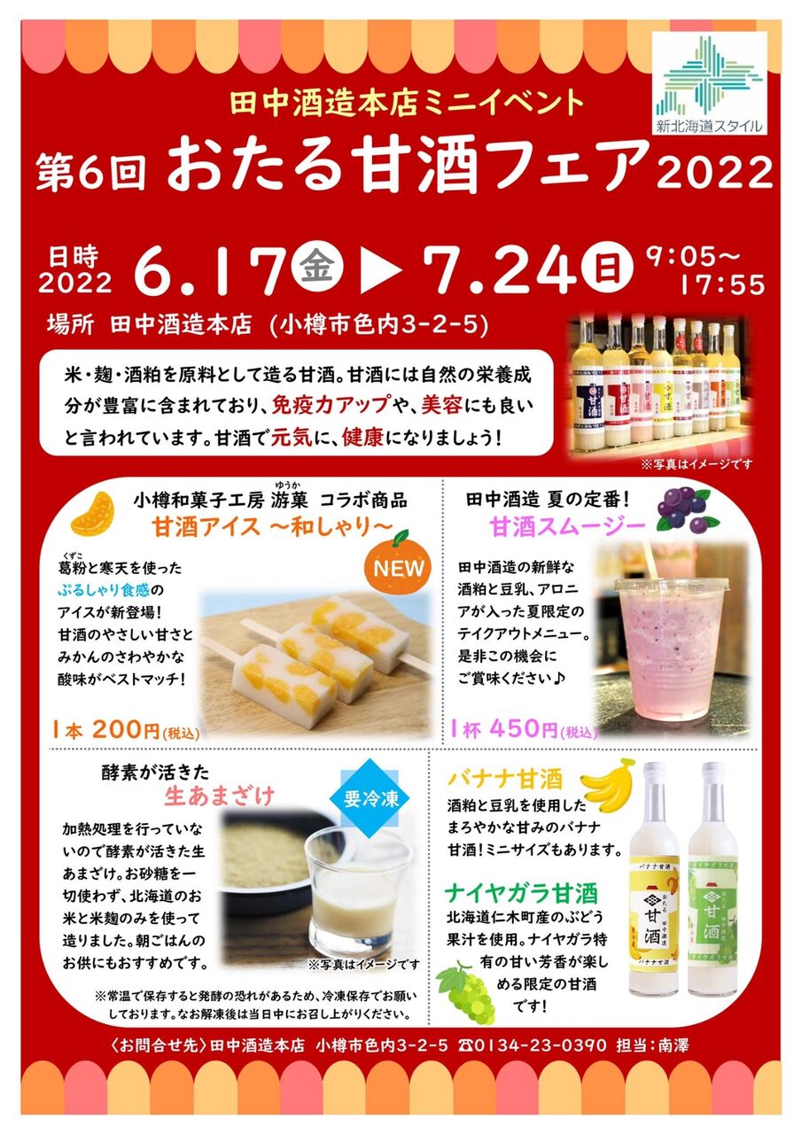 【田中酒造 本店 おたる甘酒フェア2022】2022年6月17日(金)~7月24日(日)