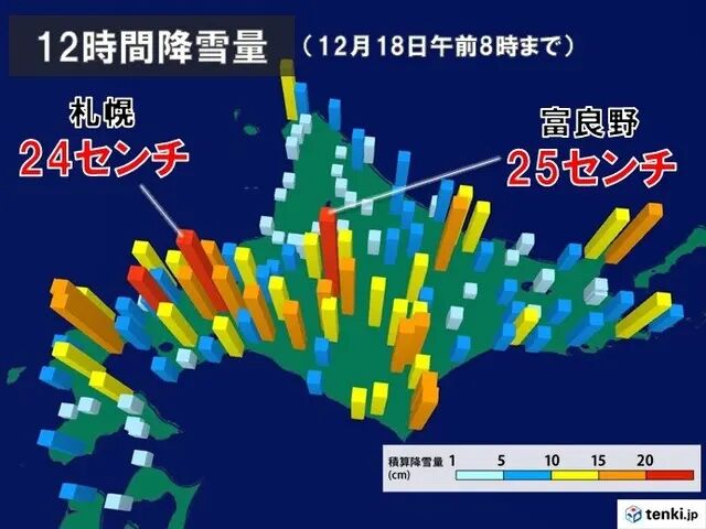18日午前8時までの12時間降雪量は、24センチでした。