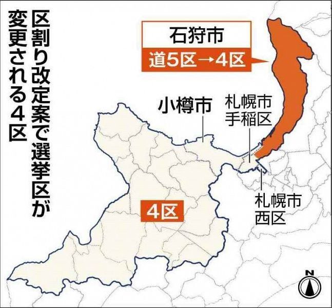 🐻✋衆院選挙区画定審議会(区割り審)が6月16日公表した衆院小選挙区の区割り改定案で、道4区(後志管内、札幌市手稲区、西区の一部)に、現在は道5区(同市厚別区、石狩管内)の石狩市を新たに加える方針が示された。