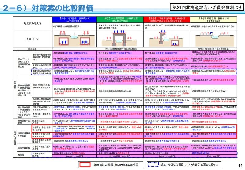 札幌市民が重視する項目や政策目標の面において、同等以上の達成が見込めることから「地下整備」案を原案として自治体に意見を照会。同意を得られたことから、検討会では「地下整備」案を対応方針として決定した。事業費は約1000億~1200億円を見込む。