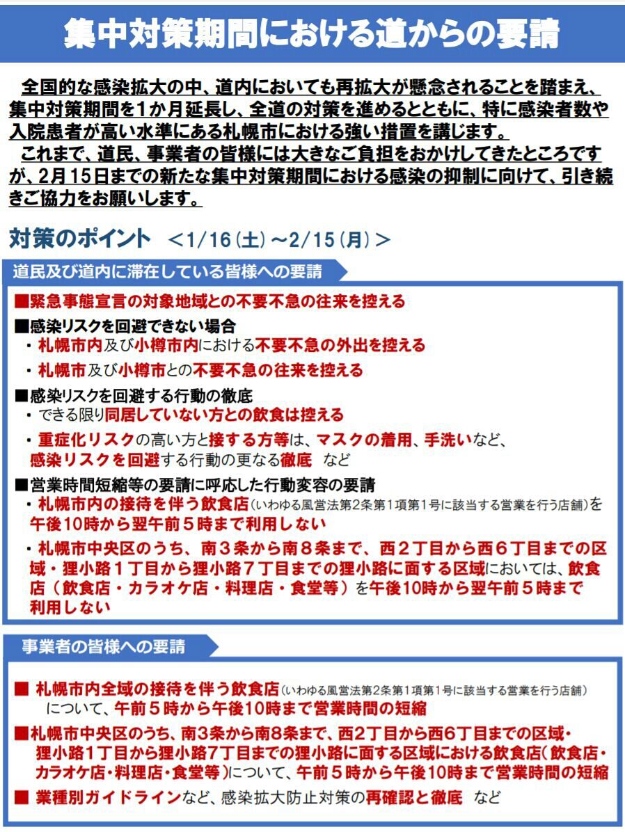 【北海道は集中対策期間を3/7迄延長❕❕】