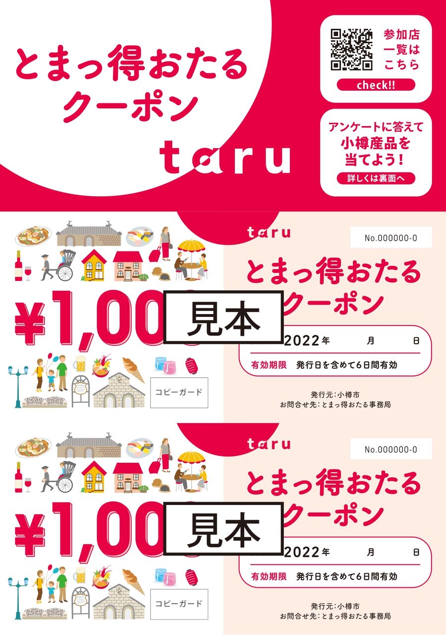 また、先着順で1名1泊あたり2,000円分のクーポンをもらえて、小樽市内の観光施設や飲食店等で利用できます。