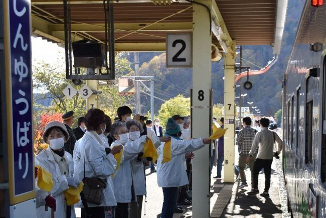夕張では‥JR石勝線開業40年を記念して23日、途中の新夕張駅では市民ら約40人が歓迎のセレモニーを行った。