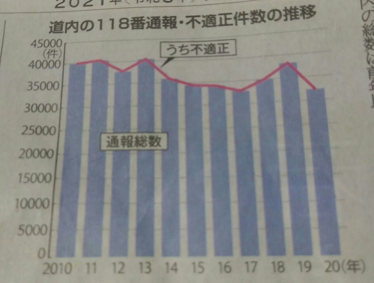 第一管区海上保安本部(本部:小樽)は《海の110番❕》に当たる《海上保安庁の緊急電話❕》【118番❕】の2020年《通報件数❕》をまとめました。