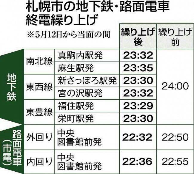 【札幌市営地下鉄と市電も最終時刻を繰り上げ❕】