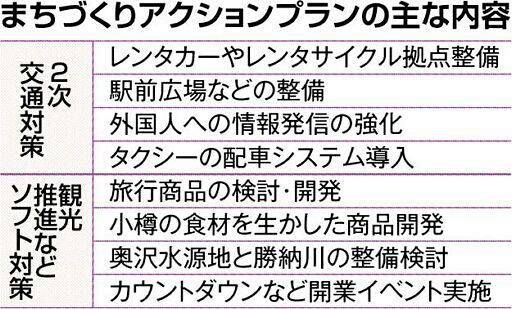 計画は昨年10月に市が概要案を作成、官民連携の北海道新幹線活用小樽まちづくり協議会で検討を重ねてきた。61の取り組みからなり、22日の同協議会で計画案が了承された。