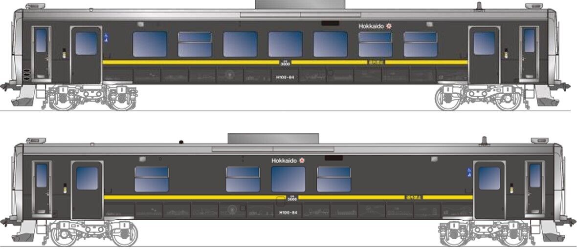 新たに導入する車両はH100-84~87号で、車両ごとに「室蘭線」「日高線」「根室線」「宗谷線」をイメージしたラッピングを施す。また、観光列車での運用を考慮し、車内は一般仕様から変更する。