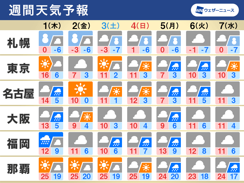 ただ、午後は太平洋側を中心に天気が回復へ。昼間も防寒必須の寒さが続きます。