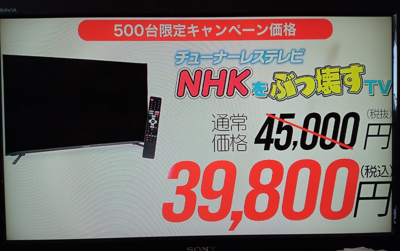 NHKをぶっ壊す!テレビの販売です!