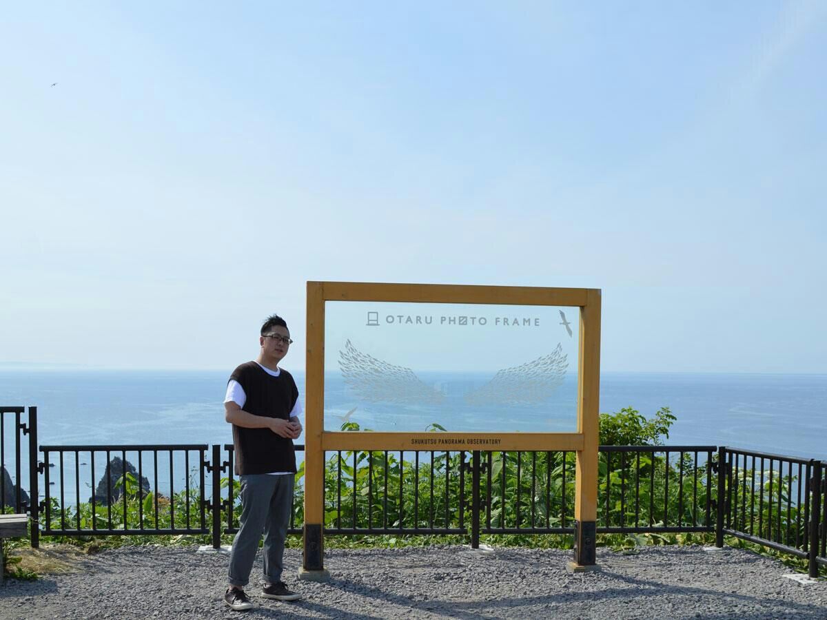 祝津パノラマ展望台の「Otaru Photo Frame」と佐藤じんたんさん